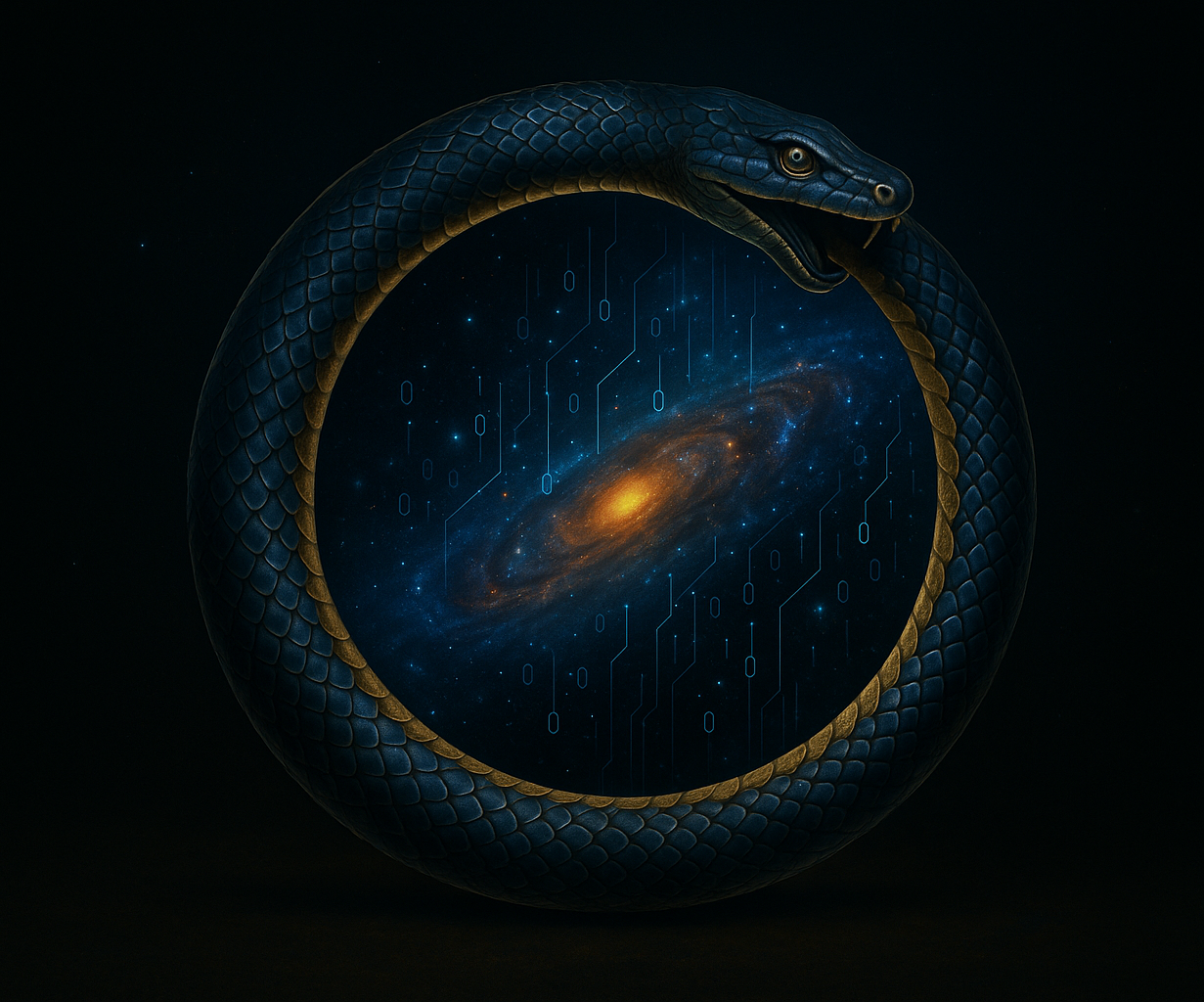 When ancient cultures depicted a snake consuming its own body, they were not describing destruction. They were describing a closed-loop universe: a system in which every ending folds back into a beginning, and where the boundary between death and birth dissolves.